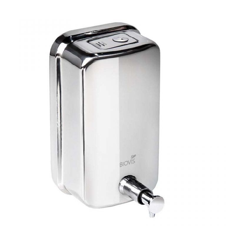 A saboneteira Visium 1000ml está disponível com acabamento escovado.